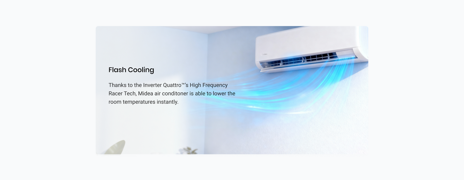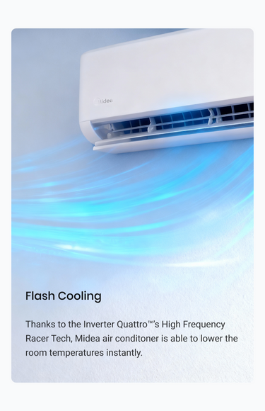 Thanks to the Inverter Quattro™’s High Frequency Racer Tech, Midea air conditoner is able to lower the room temperatures instantly.