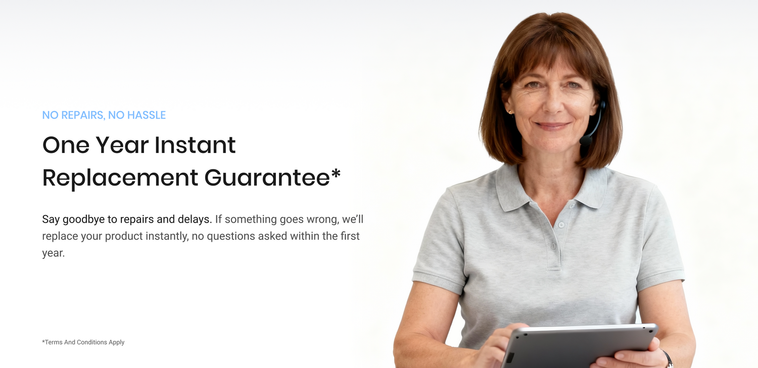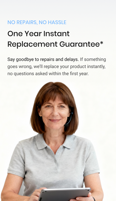 Say goodbye to repairs and delays. If something goes wrong, we’ll replace your product instantly, no questions asked within the first year.