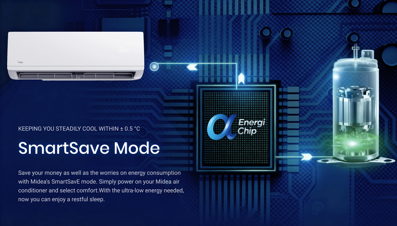 Save your money as well as the worries on energy consumption with Midea’s SmartSavE mode. Simply power on your Midea air conditioner and select comfort.With the ultra-low energy needed, now you can enjoy a restful sleep.