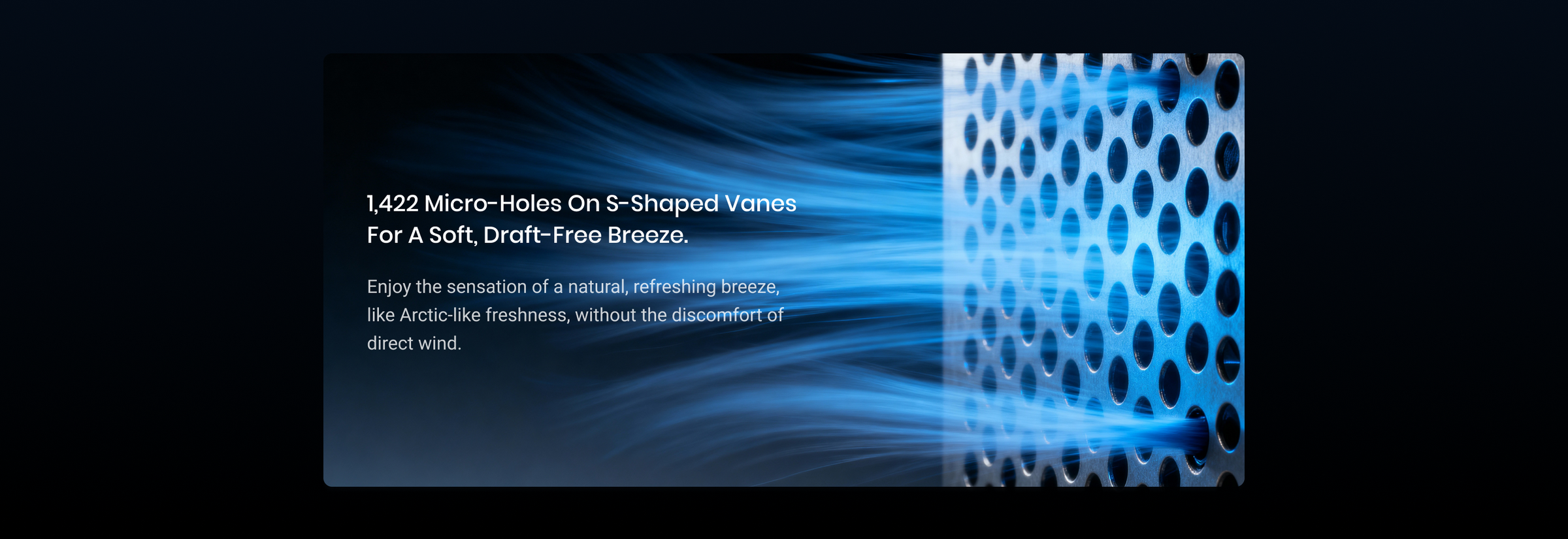 Harness the innovation of up to 1,422 micro-holes aligned on S-shaped vanes, delivering a broader, gentler spread of air for a draft-free, premium comfort environment.